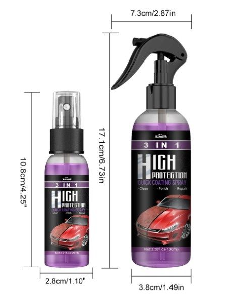 😘En 3-i-1-hurtig spraylakk med høy beskyttelse som holder bilen din ren og beholder glansen.