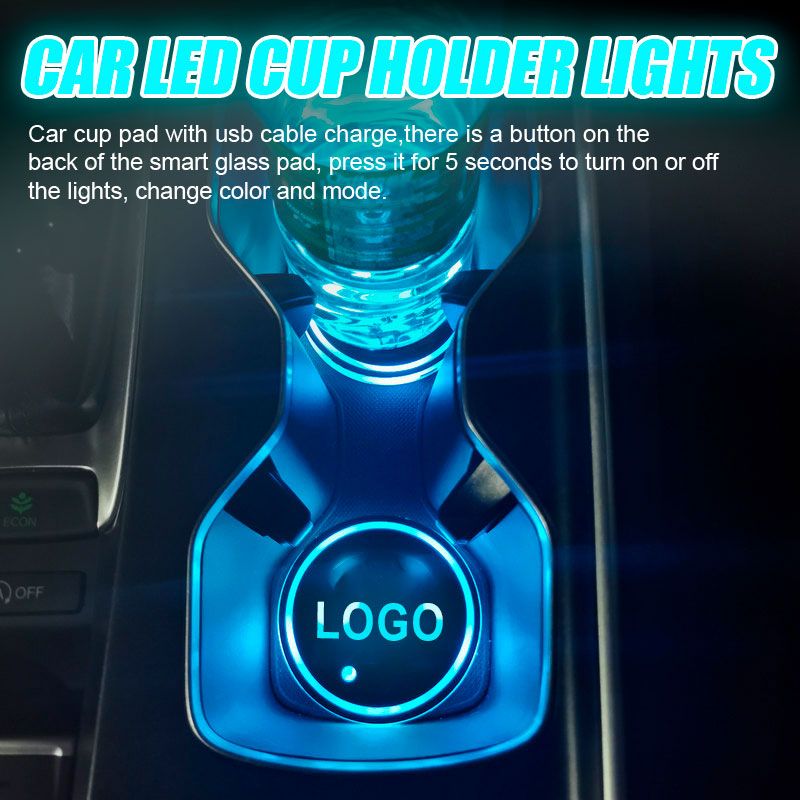 ★【Oppgrader design】Bilkopppute med usb-kabellading, det er en knapp på baksiden av den smarte glassputen, trykk på den i 5 sekunder for å slå på eller av lysene, endre farge og modus.