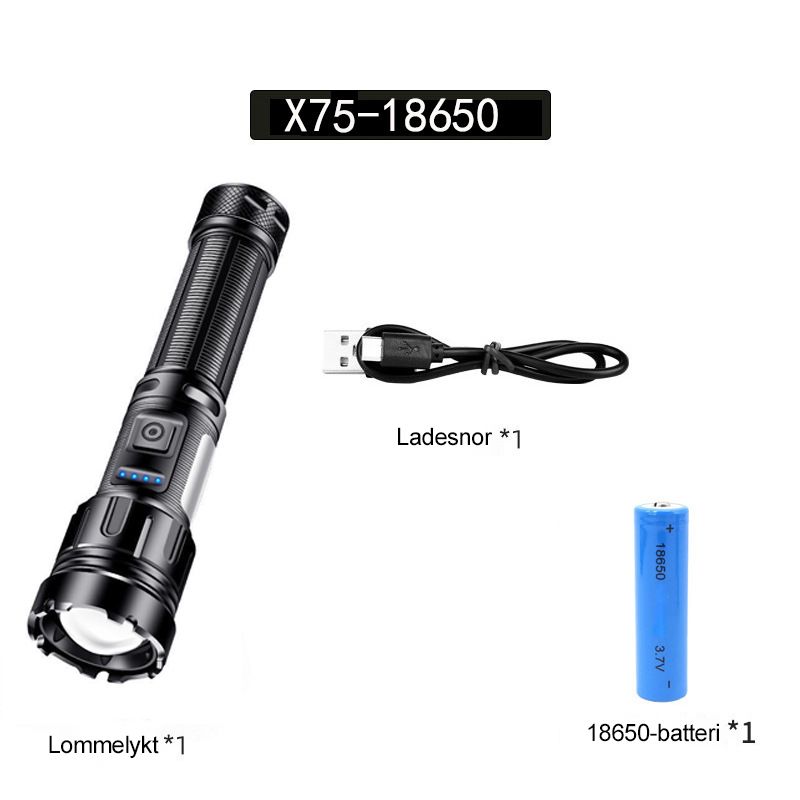 Oppladbar lommelykt, langvarig, powerbank