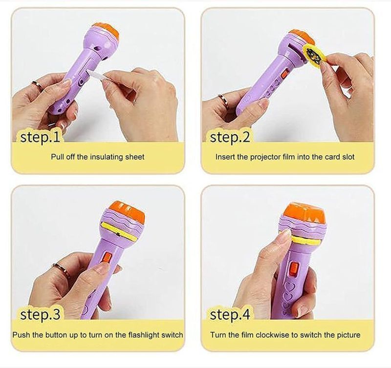 【Høy kvalitet og multifunksjon】Laget av høykvalitets ABS miljøvennlige ikke-giftige materialer, og de glatte kantene vil ikke skade barnas små hender.(Knappbatterier er inkludert) Det er veldig energieffektivt. Det er en av/på-knapp på lommelykten, som kan slås av når den ikke er i bruk. Ikke bare kan brukes som en projeksjon, men kan også brukes som lommelykt, både innendørs og utendørs. Er barnas favoritt jule-/ferie-/bursdagsgave.