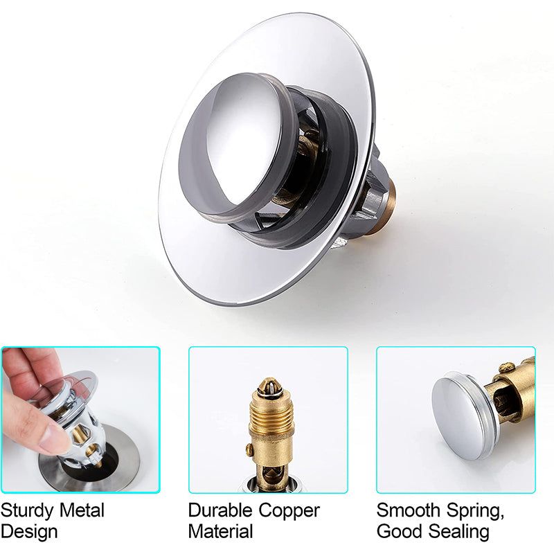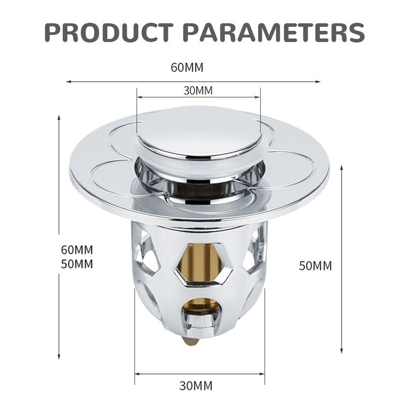 Enkel struktur, installasjon uten verktøy, fjern den gamle vaskepluggen og sett inn den nye vaskepluggen for å fullføre. En pop-up vaskeplugg kan enkelt installeres og fjernes av alle. Skyv patronen ned for å lukke forseglingen, trykk igjen for å åpne avløpet, og skru av hetten. Enkel å rengjøre, skyll direkte. Det er veldig praktisk å vaske grønnsaker, vaske oppvask, bade barn osv.