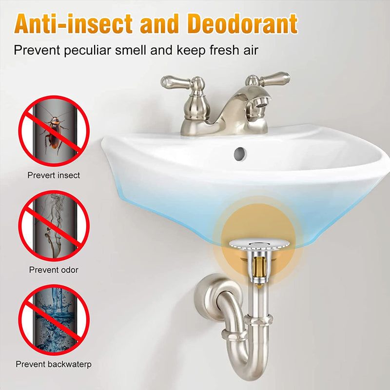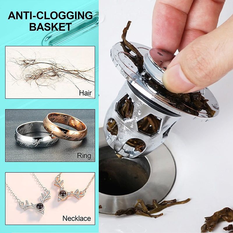 Den spesialoppgraderte anti-tilstoppingskurven for badekarvasken kan forhindre at hår, smykker, kjøkkenrot osv. setter seg fast i kloakken, gir effektiv anti-tilstopping og rask drenering, og forhindrer tap av verdisaker. Avtakbar design og separasjonsstruktur for skallkjerne hjelper deg raskt å rydde opp søppel, unngå kloakklukt og holde luften frisk til enhver tid.